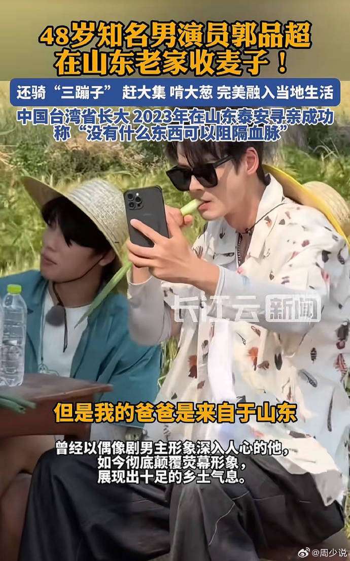 从偶像剧男主到山东大汉,郭品超的转变绝非做作。他1977年出生于台湾,2004年凭借《斗鱼》走红,随后出演《将夜》《三生三世枕上书》等热门剧,是名副其实的实力派演员。但他并未被明星光环束缚,反而乐于享受这种回归田园的生活。有网友感叹:看他骑三蹦子的样子,比演偶像剧还自然。还有人调侃:这哪像48岁,分明是28岁的小伙子,在老家待着就是不一样,状态太好了! 事实上,娱乐圈中不少明星喜欢回老家体验生活,但像郭品超这样彻底融入本土生活的人并不多。他会在社交平台上分享自己收麦子、赶集的日常,没有精致滤镜,只有最真实的烟火气。正是这种接地气的作风,圈粉无数。大家纷纷说:这样的明星才真实,没有距离感。或许正是对生活的热爱、对家乡的眷恋,让他在48岁的年纪依然充满活力,活成了让人羡慕的模样。 如今的郭品超,一边拍戏,一边享受老家的生活。偶尔被网友偶遇,他总是笑着打招呼,毫无架子。有人问他为何如此喜欢回老家,他答道:这里有我的根,有家人的味道,感觉特别踏实。也许,这就是最理想的生活状态——既能在荧幕上发光发热,也能在生活中回归本真。这样的郭品超,你是否已经爱上了呢?返回搜狐,查看更多